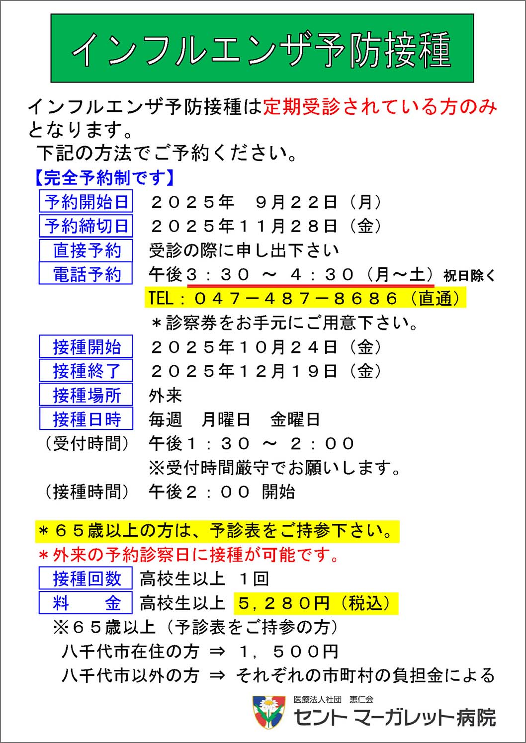 ■ お知らせ:インフルエンザ予防接種のご案内(2025年09月20日更新)