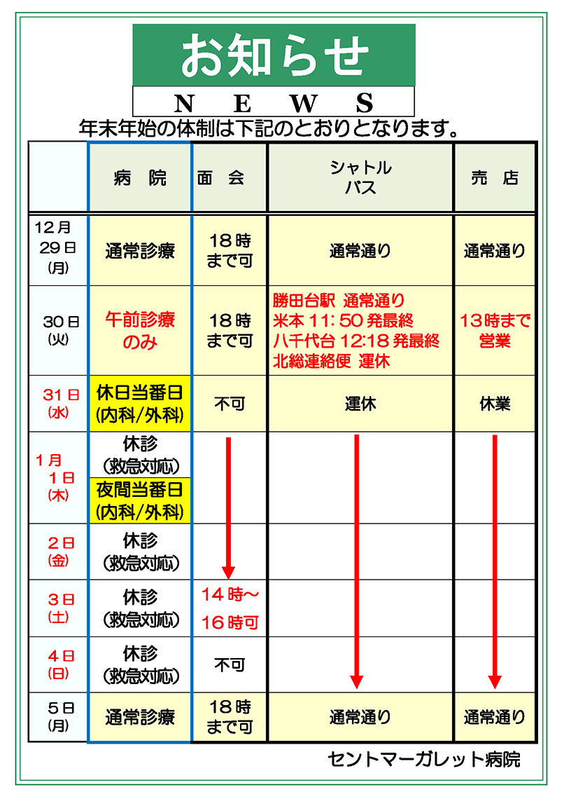 ■ お知らせ:年末年始の診療体制について(2025年12月18日更新)