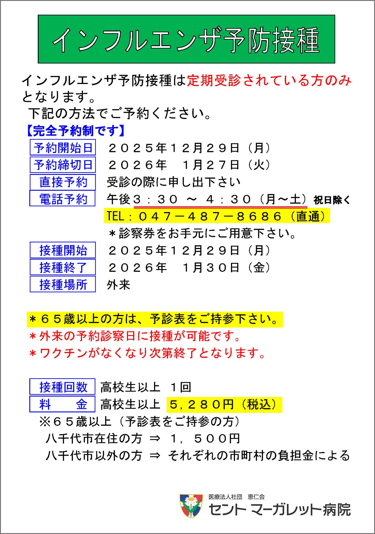 ■ お知らせ:インフルエンザ予防接種のご案内(2025年12月26日更新)