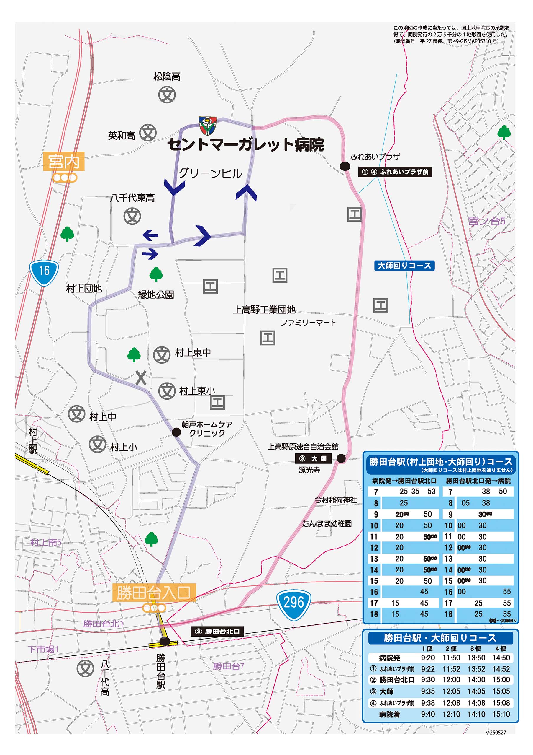 勝田台駅(村上団地経由・大師回り)コース経路図