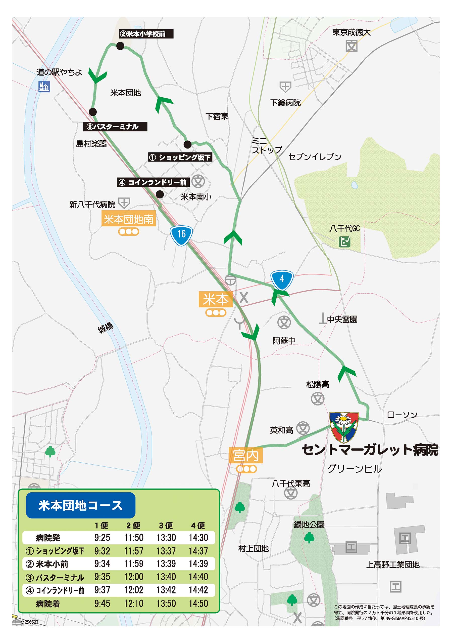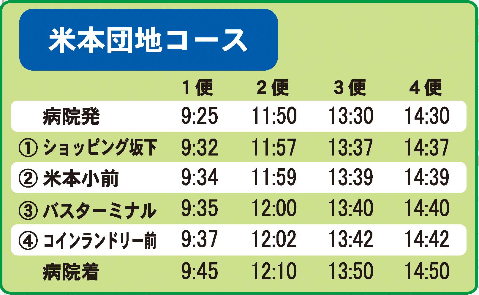 バス停への到着が10分以上遅れる場合には、運行状況をお知らせ致しますので、病院にお問合せください。
