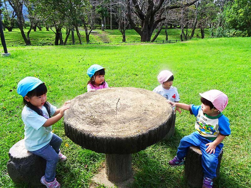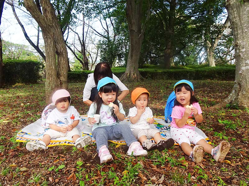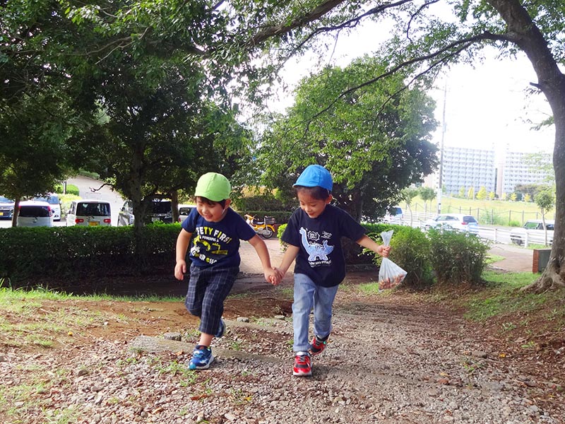3・4歳児は緑地公園の奥まで、彼岸花を見ながら