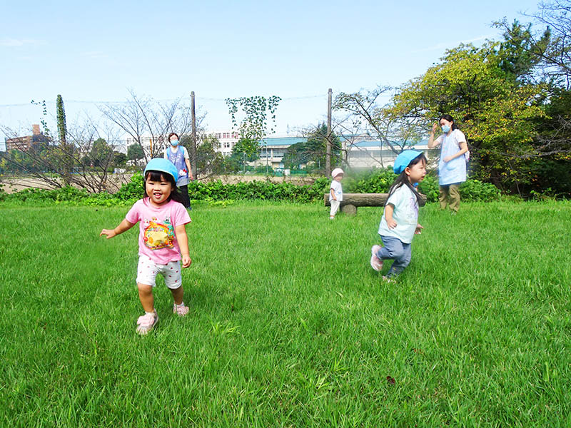小さな子供たちは、八千代東高校のプール側から保育室に