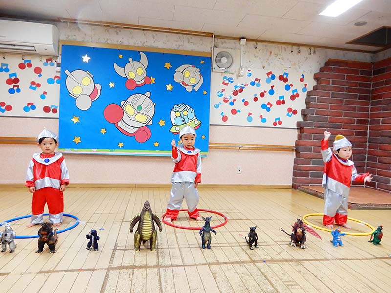 今年も学年別に遊戯を披露したり、全員での合奏や職員の