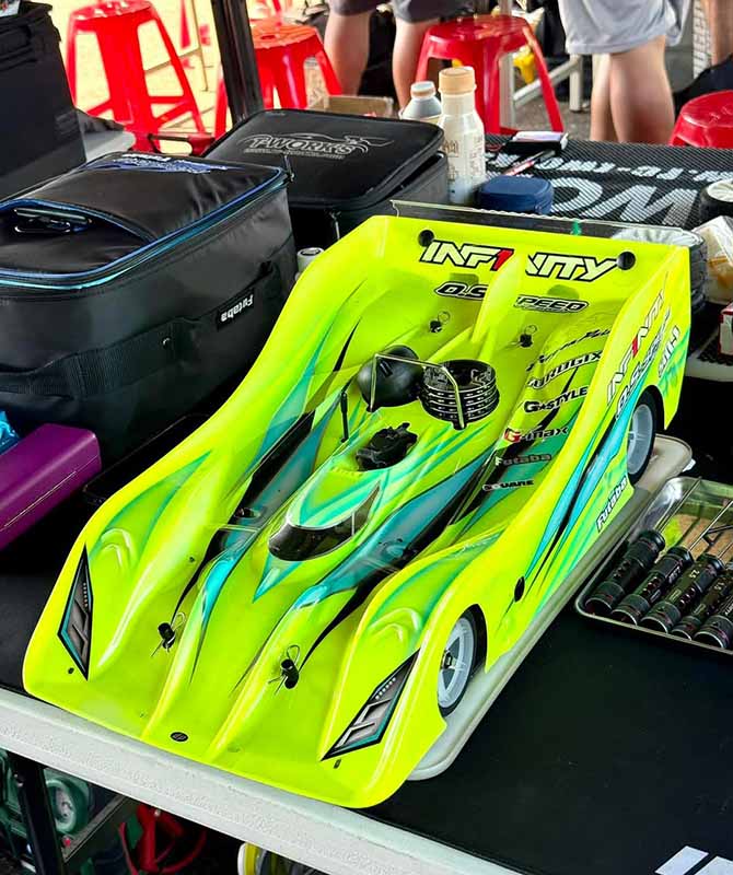 身体を動かしているスタッフやモータースポーツ(競技ラジコン)で