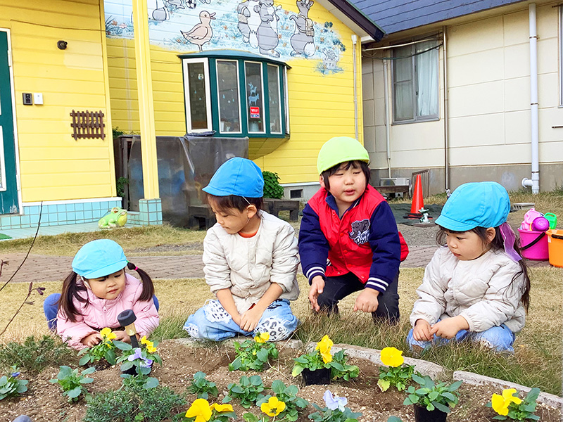 年末に子供達と植えたパンジーも花壇を彩り、